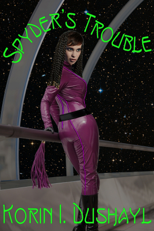 Spyder’s Trouble is the first book of The Lady & The Spyder, a 5-book saga by Korin I. Dushayl that deftly mixes sci-fi action, kink philosophy, and BDSM erotica. It’s a story that works on multiple levels, any of which could stand on their own, but it’s the intersection of them all that makes this so memorable.